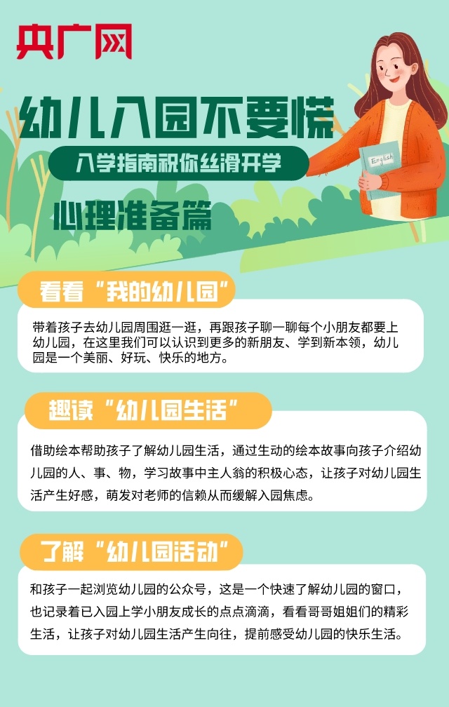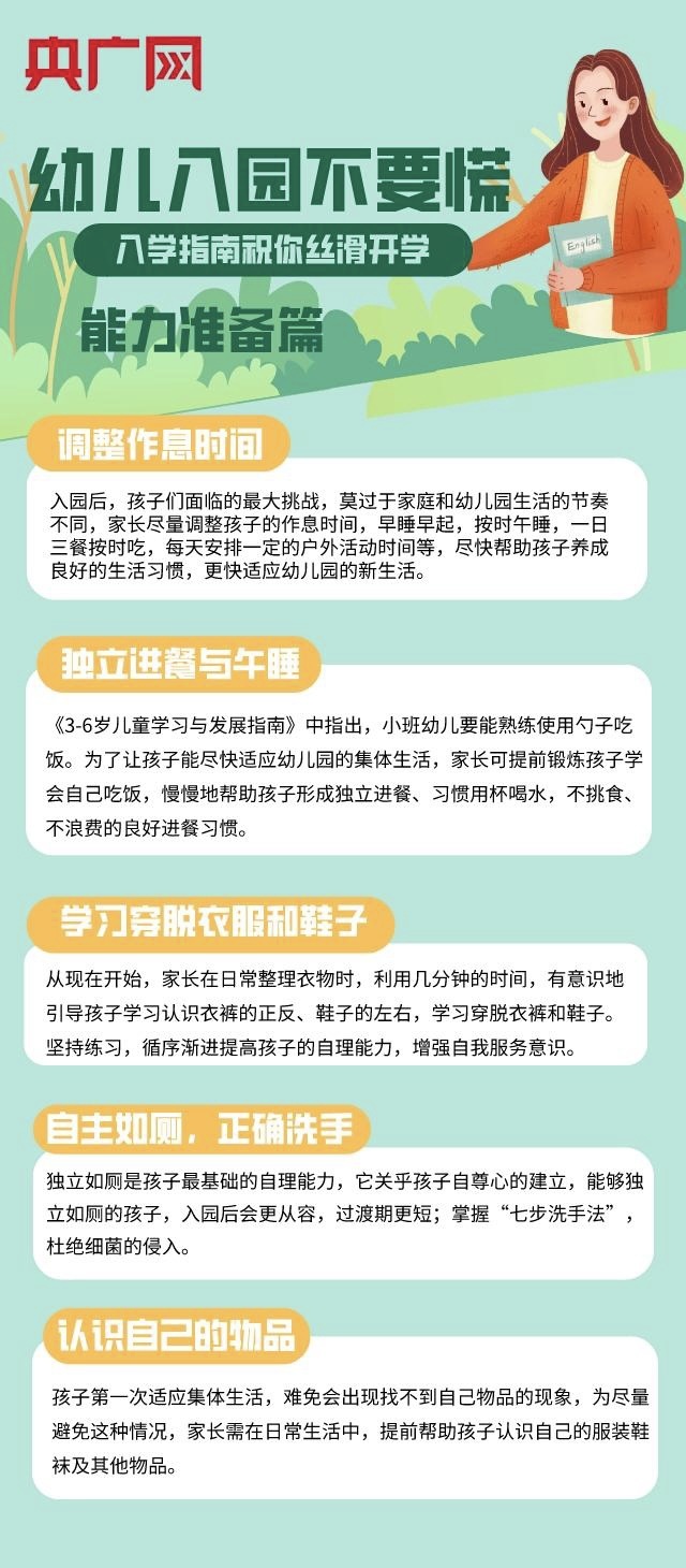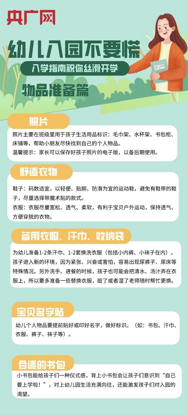 央廣網(wǎng)北京8月27日消息 幼兒園是人生的第一所學(xué)校,在這里,孩子們將開啟真正的學(xué)習(xí)生活和社會生活。可以說,這一階段對于孩子的性格塑造和習(xí)慣養(yǎng)成都有著十分重要的影響。那么幼兒入園前,新手爸媽應(yīng)該做好哪些準(zhǔn)備工作呢?別慌,這份入學(xué)指南請收藏!