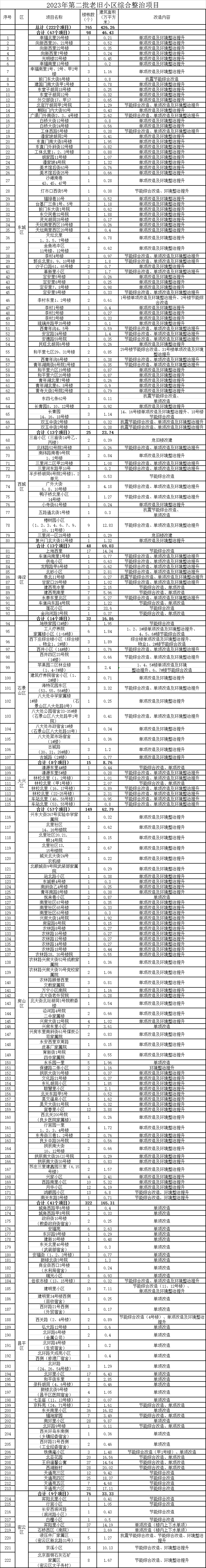 (2023年第二批老舊小區(qū)綜合整治項(xiàng)目名單,圖源:北京市住建委,央廣網(wǎng)發(fā))