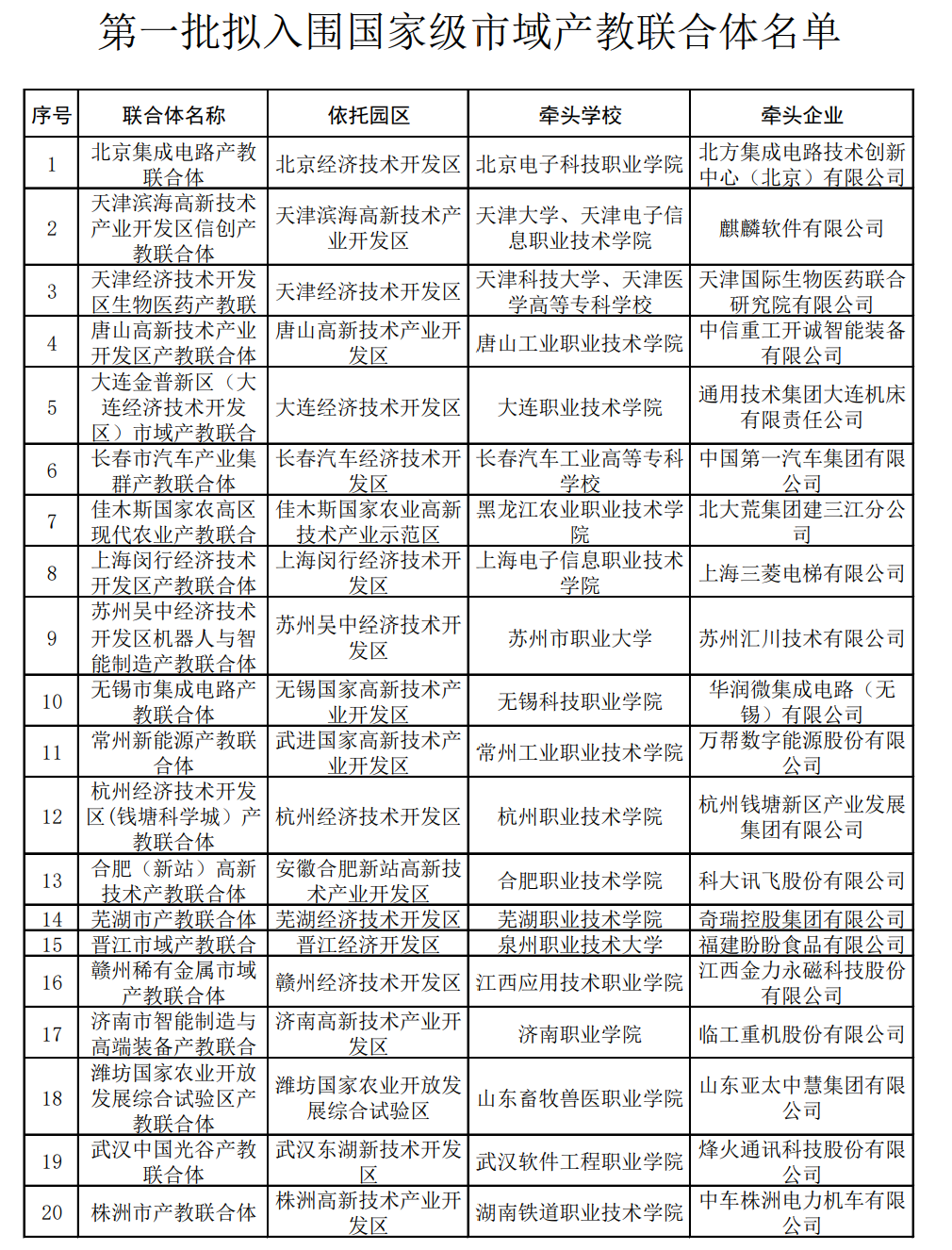 第一批擬入圍國家級市域產(chǎn)教聯(lián)合體名單公布