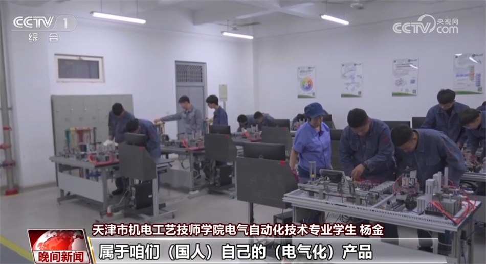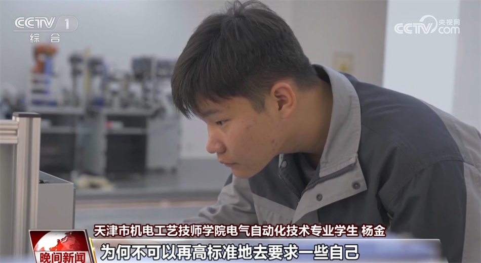 天津市機電工藝技師學院電氣自動化技術(shù)專業(yè)學生 楊金:讓每一顆螺絲、每一個部件都能發(fā)揮出它最大的作用,這就是我的需要和目標了。(未來希望)自主去研發(fā)需要使用的機器,可以去創(chuàng)造(更多)屬于咱們(國人)自己的(電氣化)產(chǎn)品。