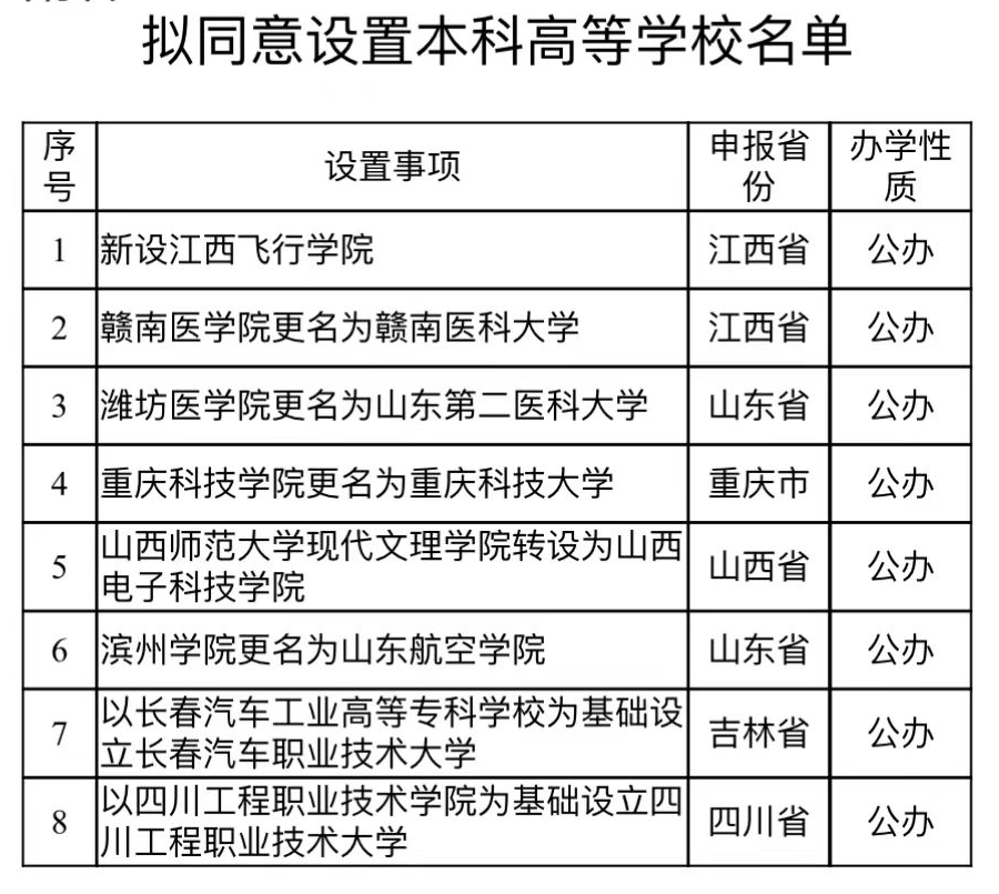 教育部擬同意設(shè)置本科高等學(xué)校名單(圖源:教育部官方網(wǎng)站)