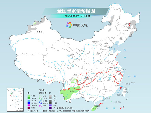 具體來看,今天,內蒙古東北部、黑龍江東部、吉林東部、新疆北部、四川南部等地部分地區(qū)有小到中雪或雨夾雪。四川南部、云南中西部、海南島大部等地部分地區(qū)有小雨。