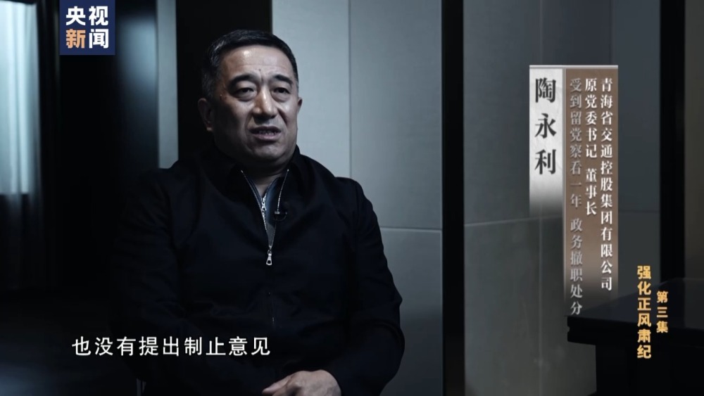青海省交通控股集團(tuán)有限公司原黨委書記、董事長 陶永利:自己也很清楚,這是不對的,也是違反紀(jì)律要求的,但是覺得人的情面大于了紀(jì)律要求,自己也就破防了,也沒有在那里提出反對意見,也沒有提出制止意見。