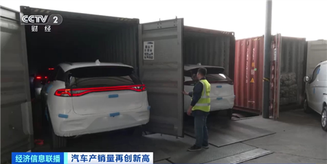 總臺(tái)央視記者 寧坤:在廣東深圳一處物流基地的前置倉(cāng),一批國(guó)產(chǎn)新能源汽車陸續(xù)裝入集裝箱,隨后將通過附近的蛇口港片區(qū)裝船出口發(fā)往東南亞國(guó)家。據(jù)了解,這是這家物流公司今年開年以后汽車出口業(yè)務(wù)的第一單。而在剛剛過去的2023年,由于汽車出口業(yè)務(wù)量猛增,他們?cè)谶@里的倉(cāng)庫(kù)面積短短一年間就擴(kuò)大了3倍。