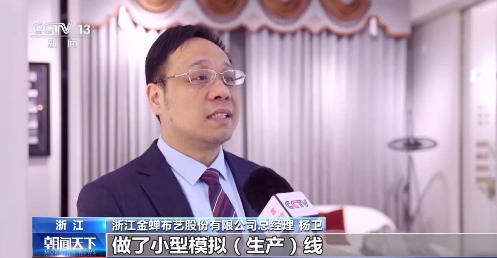 浙江金蟬布藝股份有限公司總經(jīng)理 楊衛(wèi):剛開始,父輩們會覺得投資好大,它效果怎么樣?然后我列了各種數(shù)據(jù)做了小型模擬生產(chǎn)線,把這些結果給父親看,最后父親覺得確實應該走智能化的道路,然后我們就更大規(guī)模投建整個的智能工廠。