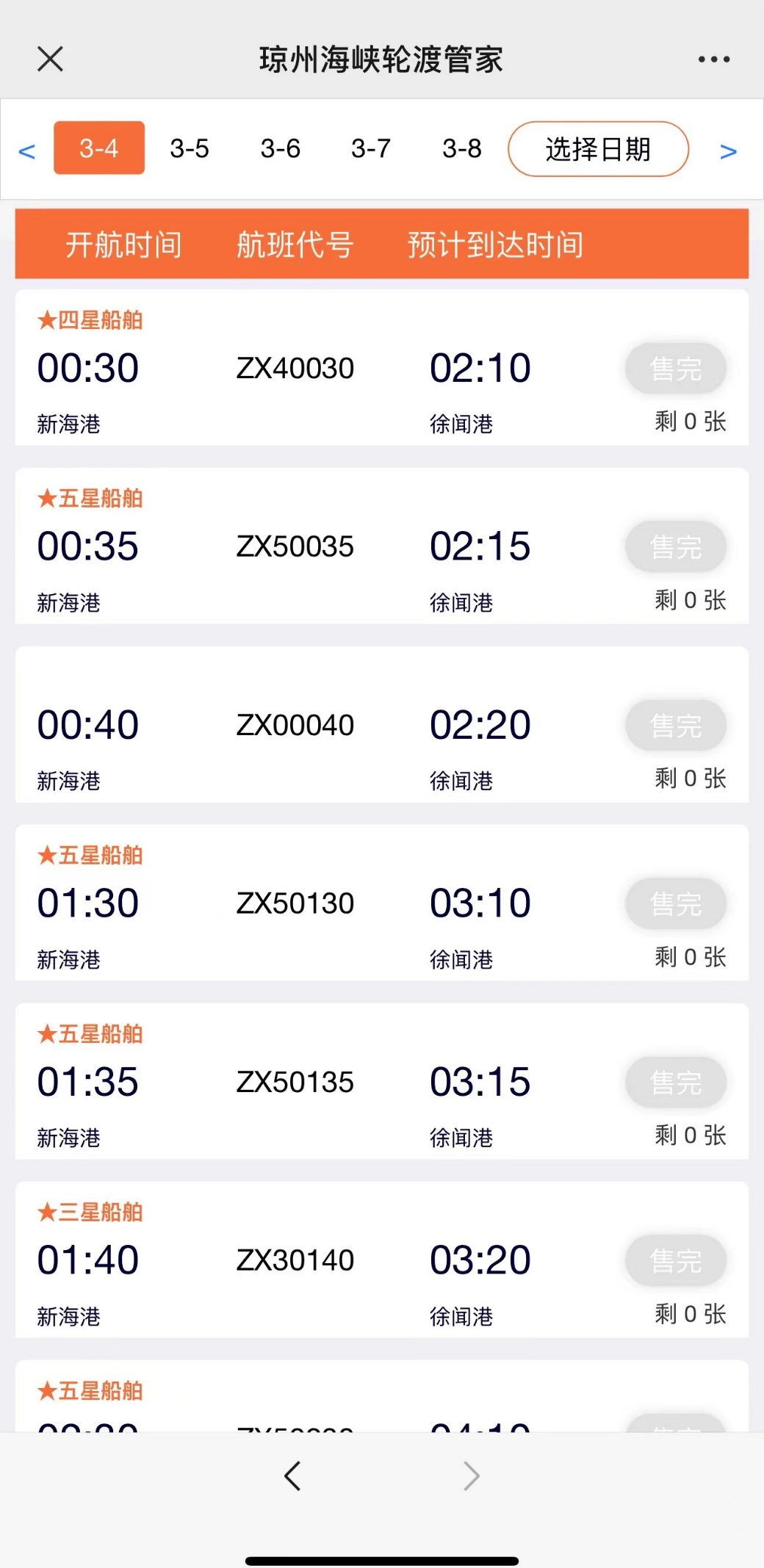 記者18日晚從“瓊州海峽輪渡管家”上查詢發(fā)現(xiàn),3月5日之前從??谛阌⒏?、新海港出港前往廣東湛江徐聞縣的新能源小汽車輪渡船票均顯示售罄;3月5日當(dāng)天及之后的票暫無法購(gòu)買。劉先生說:“這已經(jīng)是正常上班的時(shí)間了,至少我們看到周邊的這些新能源車跟初七、初八之前的車輛是相等的;跟去年或者往年比的話,滯留車還是比較多?!?/p>