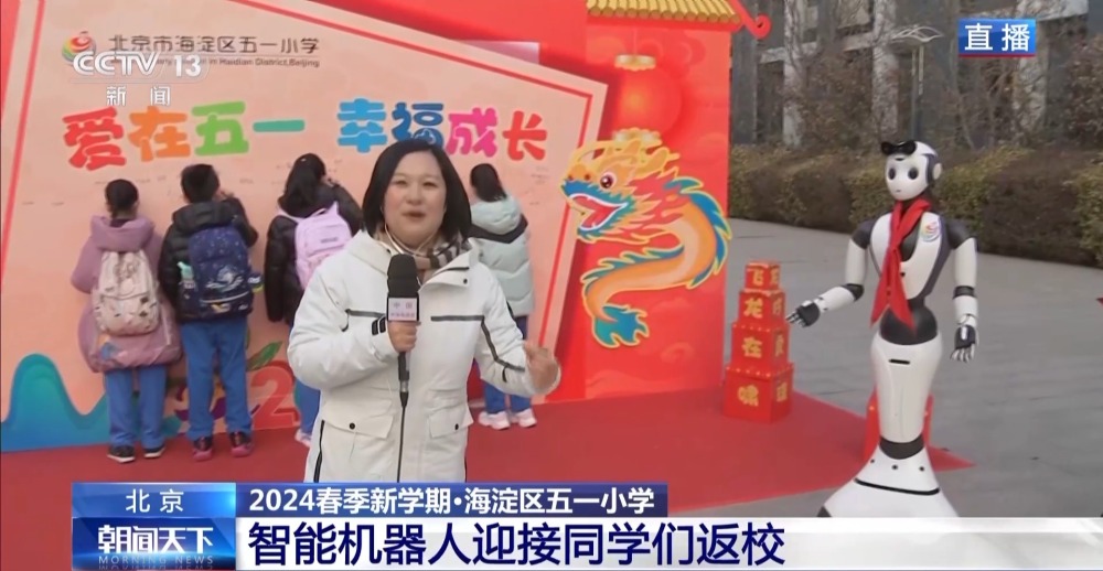今天(2月26日)早上,除了老師們?cè)缭缭谛iT(mén)口迎接孩子們以外,還有一位“新伙伴”,就是智能機(jī)器人,也吸引了很多同學(xué)跟他對(duì)話、合影。