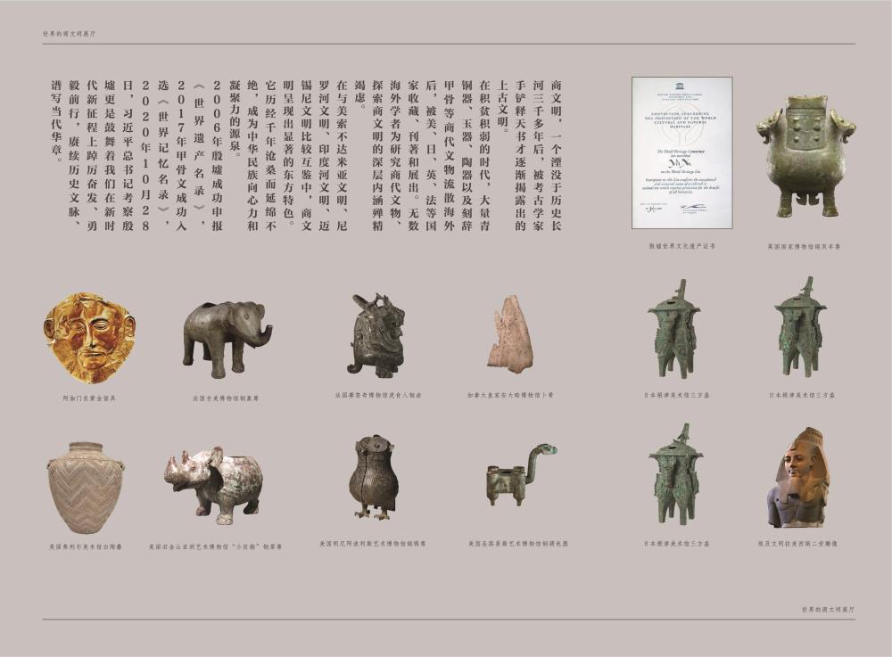 基本陳列將長期對公眾開放,展示幾代殷墟考古人接力前行、不斷求索,取得了一次又一次重要發(fā)掘成果,對夏商都邑的深入研究,為不同時期不同區(qū)域的商文化研究提供了對比標(biāo)尺。眾多首次亮相的各類珍貴文物再現(xiàn)了商朝繁盛的城市文明,完善的禮樂文明、發(fā)達(dá)的青銅文明、燦爛的文字文明以及高超的科技文明。全面系統(tǒng)地展現(xiàn)了我國商代晚期都城的風(fēng)貌,讓全世界看到一個中華文明早期發(fā)展階段最為輝煌的時代——大邑商。