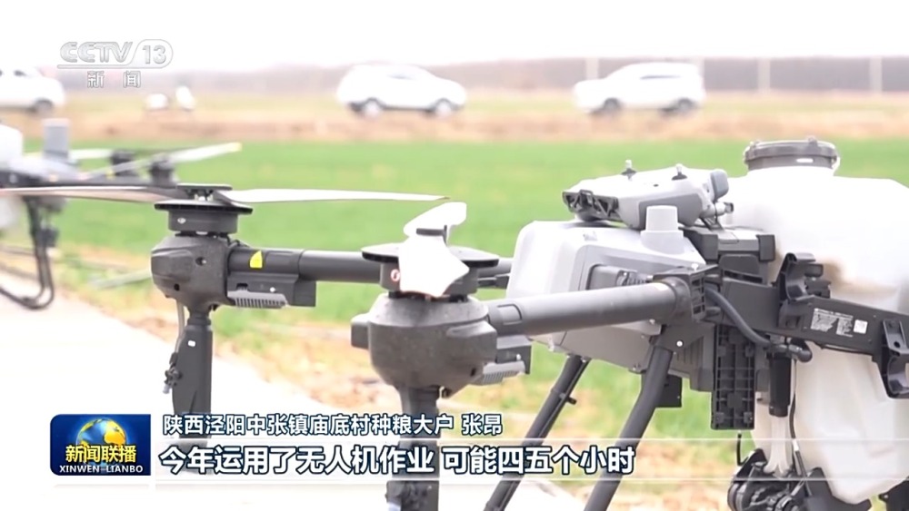 陜西涇陽中張鎮(zhèn)廟底村種糧大戶 張昂:往年我們用的人工噴灑,作業(yè)時(shí)間長(zhǎng),而且成本也比較高,今年運(yùn)用了無人機(jī)作業(yè),可能四五個(gè)小時(shí),把我這兩千畝麥田的作業(yè)就基本完成了,而且還省錢。