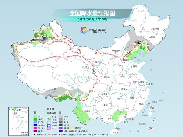 明天,內(nèi)蒙古中東部、遼寧北部和東部、河北北部、新疆沿天山地區(qū)、伊犁河谷和南疆西部山區(qū)、西藏東部和南部、川西高原南部等地部分地區(qū)有小到中雪或雨夾雪,其中,內(nèi)蒙古東南部、新疆沿天山地區(qū)、伊犁河谷和南疆西部山區(qū)高海拔地區(qū)等地部分地區(qū)有大到暴雪,局地大暴雪。遼寧中南部、新疆北疆低海拔地區(qū)、西藏南部、河北東北部、北京、天津、云南中西部、廣西東部等地部分地區(qū)有小雨,局地中雨。