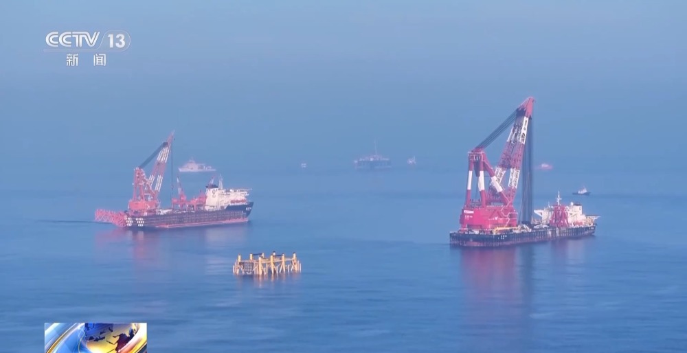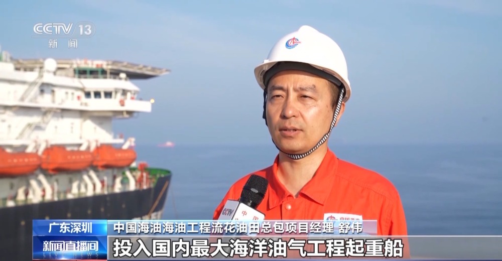 總臺央視記者 古峻嶺:在“?;枴焙I习惭b作業(yè)現(xiàn)場,經(jīng)過16個小時的連續(xù)施工作業(yè),“?;枴币呀?jīng)由昨天滑移下水時的橫向漂浮狀態(tài),變?yōu)橹绷顟B(tài),它高達(dá)338米的龐大身軀,已經(jīng)穩(wěn)穩(wěn)站立在了324米深的海床之上,僅有10余米的部分露出水面,接下來工作人員將以它為基礎(chǔ),建設(shè)安裝一座萬噸級海上鉆井平臺。未來它將在臺風(fēng)和惡劣海況的輪番考驗下,在這里穩(wěn)穩(wěn)矗立30年,源源不斷地將深海油氣輸送到千家萬戶,為保障國家能源安全提供堅強(qiáng)支撐。