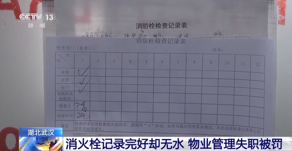 消火栓記錄完好卻無(wú)水 物業(yè)管理失職被罰