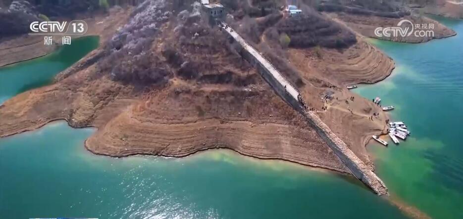 您現(xiàn)在看到的是位于河北省寬城滿(mǎn)族自治縣境內(nèi)的潘家口水庫(kù)“水下長(zhǎng)城”。長(zhǎng)城內(nèi)外,漫山遍野的山杏花悄然綻放,在春風(fēng)中爭(zhēng)芳斗艷,時(shí)而飄來(lái)陣陣花香。春日里,盛開(kāi)的杏花、碧綠的湖水與巍峨的長(zhǎng)城交相輝映,形成了剛?cè)嶂赖耐昝廊诤?,?gòu)成一幅絕美的畫(huà)卷,吸引了眾多游客登上長(zhǎng)城前來(lái)賞花踏青。