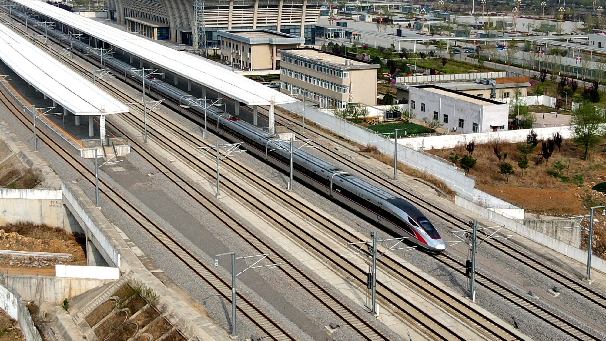 2024年4月9日,山東臨沂,一列動(dòng)車組列車駛出蒙山站。
