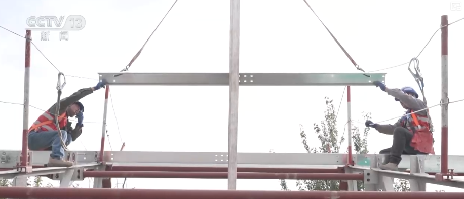 借助這種鋼結(jié)構(gòu)屋頂,改造團隊這次實現(xiàn)了“分段流水作業(yè)”和“預(yù)制式裝配”等施工工藝,使得單棟樓的屋面施工周期從以前的2個月壓縮到了僅需20天左右。現(xiàn)場,幾名工人像“搭積木”一樣,不到一上午的時間就能搭好這樣一組鋼結(jié)構(gòu)的房架。