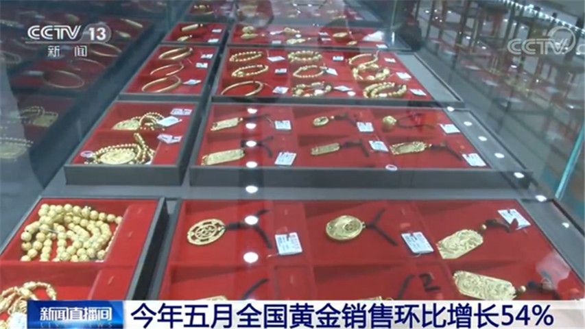 央視網(wǎng)消息:進(jìn)入5月份以后,各地黃金消費(fèi)明顯回暖。中國黃金協(xié)會最新統(tǒng)計表明,今年5月份全國黃金銷售環(huán)比增長了54%。