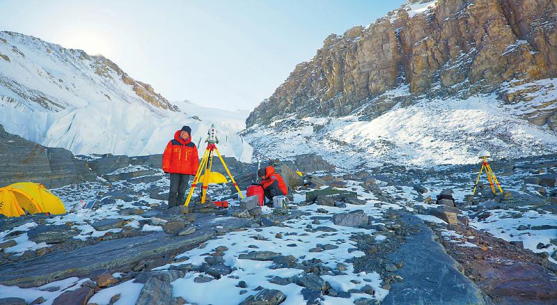 更多測繪人的日常被記錄下來。史志剛,重力測量組組長,除完成珠峰地區(qū)加密重力測量之外,他還完成海拔5200米至6000米所有6個交會點的重力測量,成為本次珠峰高程測量項目中,唯一一個走遍所有交會測量點的人。王戰(zhàn)勝,在本次珠峰高程測量中負責高程導線、GNSS測量和東絨3點的交會測量工作。他攀冰跨河,4次到達海拔最高的東絨3交會點。鄭林,大本營交會測量組組長,帶著年輕隊員武光偉克服了距離峰頂遠、交會測量難度大的困難,完成珠峰大本營的交會測量及基準站值守工作……