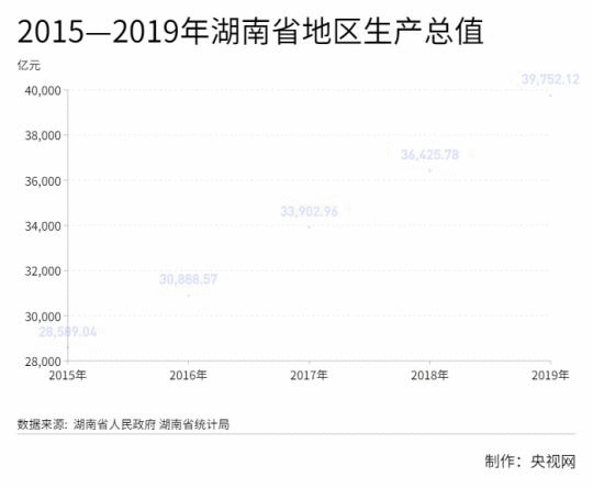2019年,湖南地區(qū)生產(chǎn)總值接近4萬億元,達39752.12億元,按不變價格計算,比上年增長7.6%,符合7.5%—8%的預(yù)期目標。