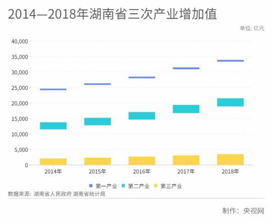 圖2:2014—2018年湖南省三次產(chǎn)業(yè)增加值