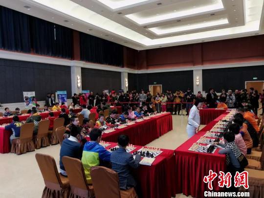 圖為“車輪賽”現(xiàn)場,卡爾波夫與小棋迷過招。主辦方提供