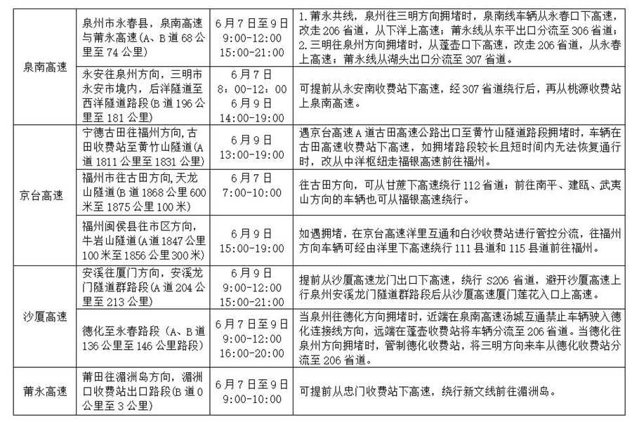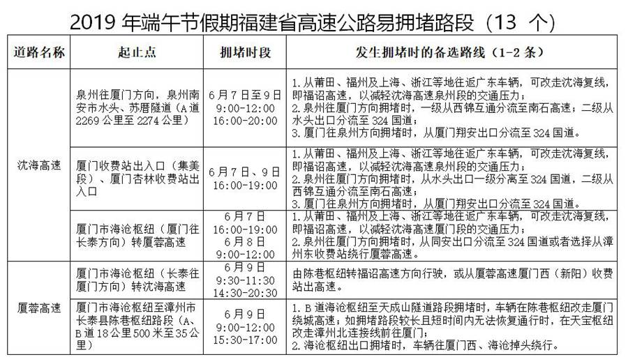 端午節(jié)假期福建各地高速行車(chē)安全提示如下——