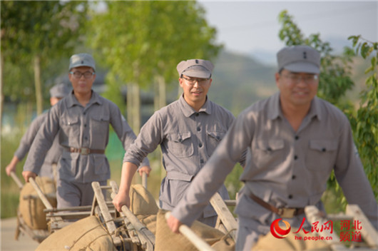 參觀結(jié)束后,學(xué)員推起獨(dú)輪車、挑起扁擔(dān),將“軍糧”送往抗戰(zhàn)一線。耳畔響起的是陳毅元帥曾說:“淮海戰(zhàn)役的勝利是老百姓用小車推出來的”。抬起受傷的“戰(zhàn)友”送往“后方”救治。一系列有感染力和實(shí)操性的軍事化體驗(yàn)教學(xué),讓黨性教育更“走心”。