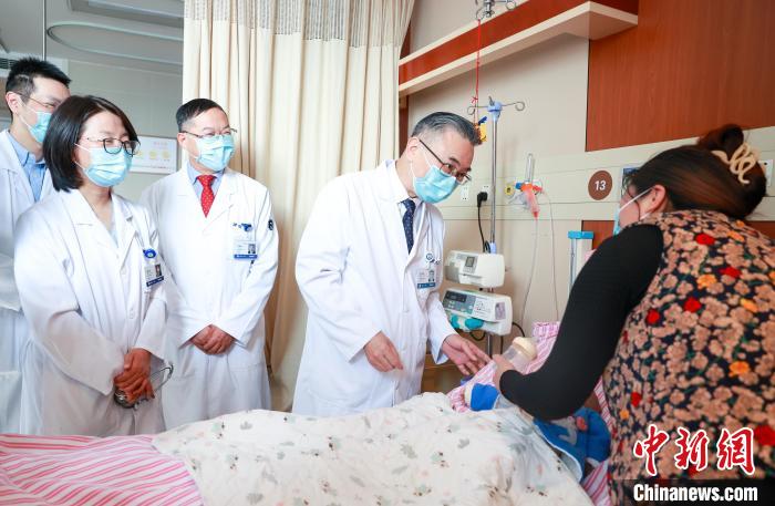 圖為王偉林等醫(yī)生在小德勒出院前查房。浙大二院供圖