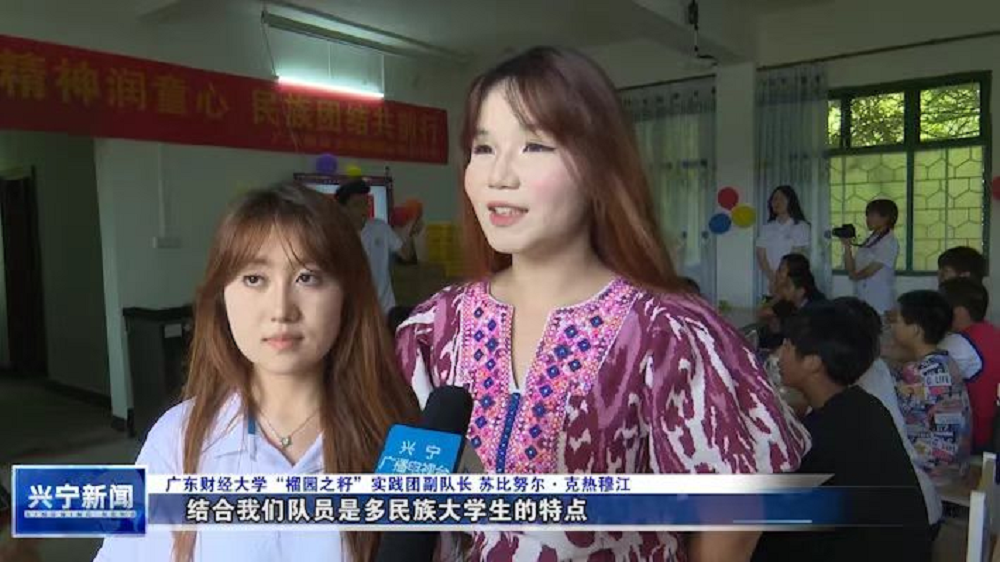 實踐團隊員蘇比努爾 克熱穆江介紹到:在廣財大,校內(nèi)石榴樹生機勃勃,校園有“榴園”的雅稱。我們的隊員是來自廣財?shù)母髅褡宕髮W生,是“榴園”內(nèi)的“石榴籽”,因此老師為我們?nèi)∶傲駡@之籽”實踐團。