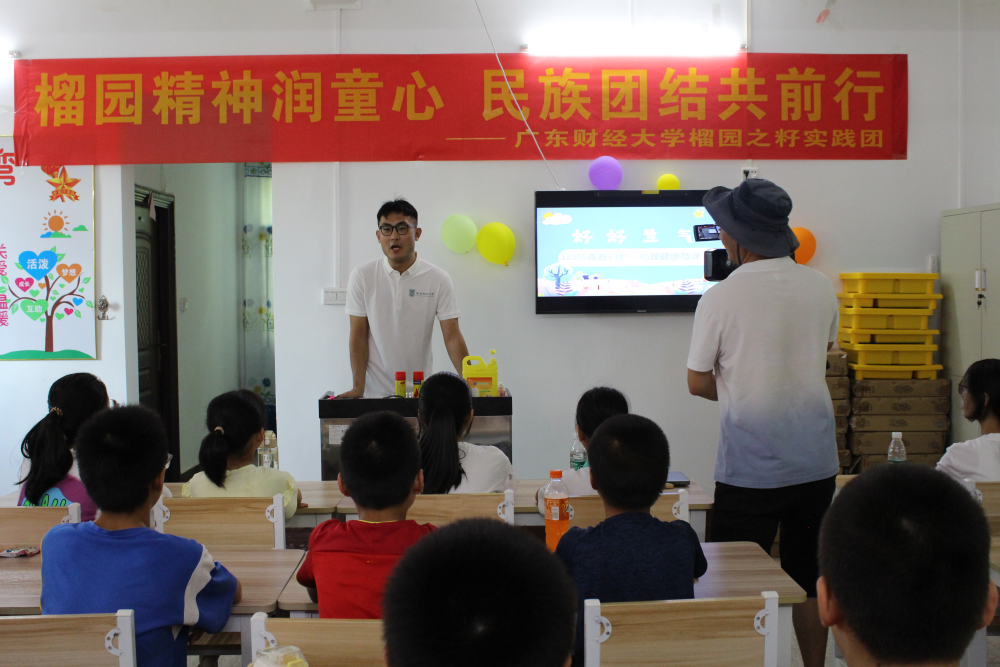“榴園精神”是廣財大校園文化的精髓?!傲駡@精神”的內(nèi)涵,即是一代代廣財人用熱情似火的青春和朝氣蓬勃的努力,為教育事業(yè)貢獻力量,“榴園精神”是一種團結(jié)奮斗、勇于創(chuàng)新、回饋社會的精神風貌。此次支教活動是廣財師生踐行“榴園精神”的一次生動體現(xiàn),同時他們也向鄉(xiāng)村兒童傳遞 “榴園精神”,激勵他們勤奮向?qū)W。