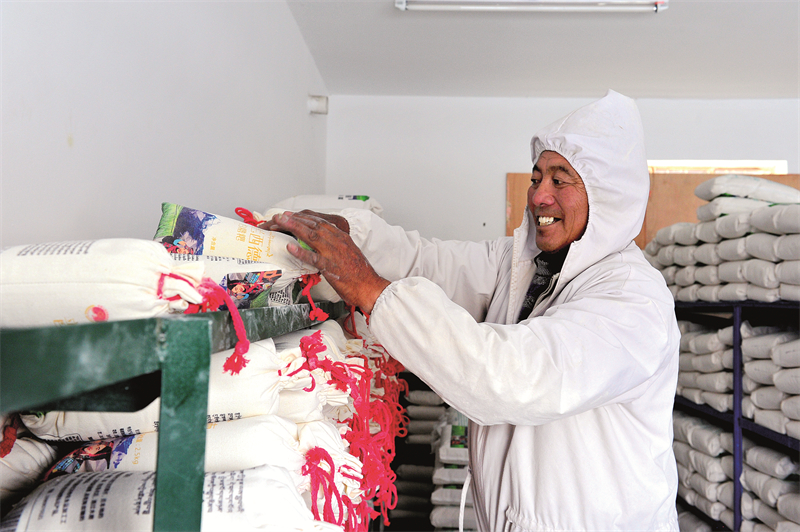 如今,在西德稞原地食品有限公司的帶動下,久美拉姆家種的青稞根本不愁銷路。2021年,公司以每畝170斤、一斤2.5元的價格對全村青稞進(jìn)行統(tǒng)一收購,每斤收購價高于市場價0.5元。同時,在村委會的統(tǒng)一安排下,久美拉姆每個月會去公司上幾天班,除了工資外,年底還能享受到公司的分紅?!肮久磕贻喠靼才糯迕袂皝韯?wù)工,累計安排村民235人次,實現(xiàn)勞務(wù)創(chuàng)收33萬元,人均增收1000元左右?!钡┰鲱D珠介紹,在公司帶動下,普蘭全縣推廣種植白青稞3100余畝,參與群眾達(dá)200多戶,實現(xiàn)群眾增收100萬元,脫貧戶實現(xiàn)種植收入30多萬元。近年來,隨著西德稞原地食品有限公司不斷發(fā)展壯大,西德村群眾的致富途徑日益寬廣,步入了種植增收、務(wù)工增收、分紅增收等多種增收方式鋪就的康莊大道,形成了以產(chǎn)業(yè)為支撐的長效增收機(jī)制。