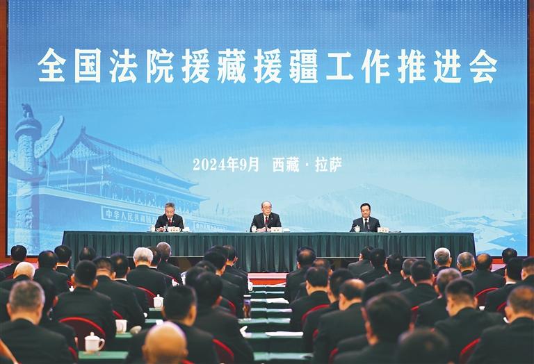 張軍強(qiáng)調(diào),對口援藏援疆重在“對口”。要扭住對口援藏援疆的關(guān)鍵點(diǎn)精準(zhǔn)發(fā)力。要錨定受援地區(qū)戰(zhàn)略定位和改革發(fā)展所需,通過審判業(yè)務(wù)援助促進(jìn)提質(zhì)增效,提升法院服務(wù)大局的能力水平。要以雙贏多贏共贏的理念做優(yōu)人才智力援助,選派優(yōu)秀年輕干部到受援地區(qū)接受磨礪、增長才干,帶動受援法院法官能力素質(zhì)提升。要把提高政治能力作為教育培訓(xùn)援助的根本,把習(xí)近平法治思想作為“綱”和“魂”,用好法答網(wǎng)、人民法院案例庫、中國法官培訓(xùn)網(wǎng),以“定制式”“菜單式”教育培訓(xùn)提升實(shí)用性、實(shí)效性。要把中華民族共同體意識融入文化生活援助中,融入受援法院審判執(zhí)行工作中,在潤物無聲中打牢民族團(tuán)結(jié)的思想和文化基礎(chǔ)。要統(tǒng)籌軟硬件建設(shè)和數(shù)據(jù)思維提升,通過信息化建設(shè)援助為受援法院發(fā)展提供強(qiáng)勁動能。要堅(jiān)持開源節(jié)流并舉,加大物資裝備援助力度,嚴(yán)格管理、科學(xué)使用,確保每一分錢都用在刀刃上、發(fā)揮最大效能。