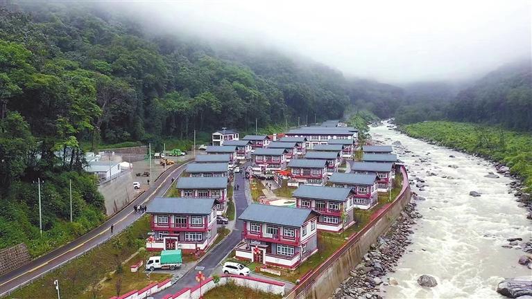 上海對(duì)口援建的邊境小康示范村亞東縣龐達(dá)村全景。