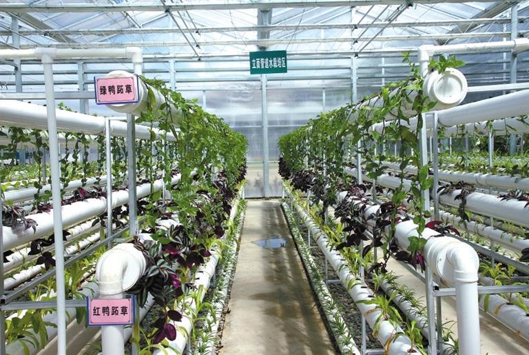 上海援建的江孜縣紅河谷農(nóng)業(yè)科技示范園區(qū)內(nèi)的立面管道水栽培區(qū)。