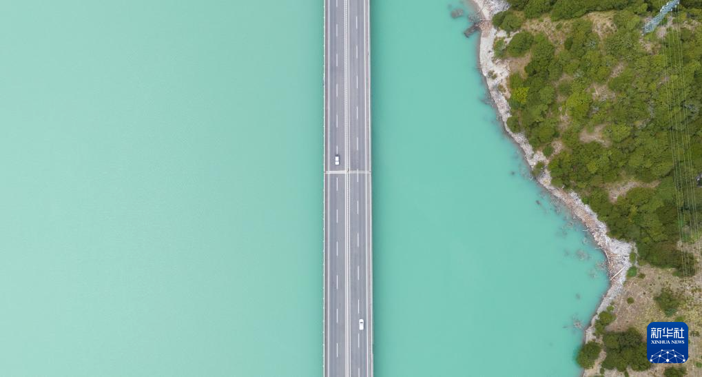 橫跨在西藏林芝市境內(nèi)尼洋河上的林芝至拉薩高等級(高速)公路(9月5日攝,無人機照片)。