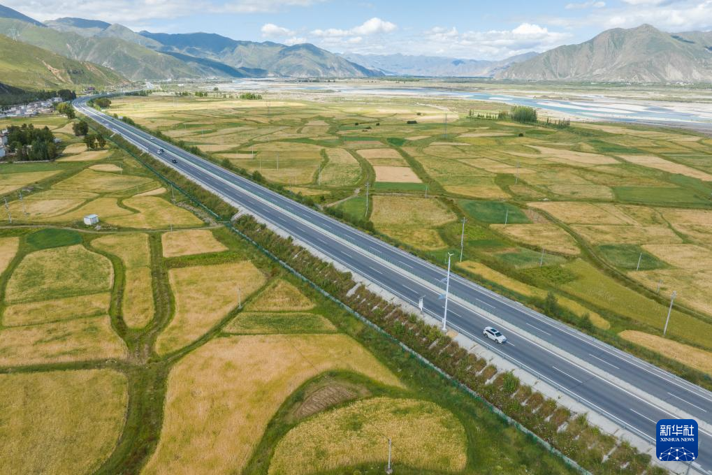 從空中俯瞰西藏拉薩至日喀則高等級(高速)公路南木林段(9月11日攝,無人機照片)。