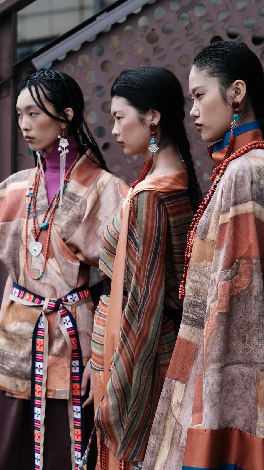 以馬乖在中國國際時裝周的發(fā)布產品為例,連續(xù)多季深根民族文化的傳承與創(chuàng)新,在跟隨株洲援藏工作隊進入扎囊縣后,馬乖開始深入發(fā)掘藏族服飾與時尚消費的融合創(chuàng)新,跟其他設計師借鑒少數民族元素做新產品的初衷不同,素白所呈現的新款背后是整個團隊研發(fā)的藏族非遺產品的動態(tài)活化過程,氆氌之鄉(xiāng)的“經濟產品”是馬乖展開文化元素呈現后的落點,共建面料研發(fā)中心,將手工藝面料再造作為時尚服飾的亮點,研發(fā)新產品,提質文化成果的經濟轉化。觀察素白發(fā)布的往季產品,不難發(fā)現,精粹歷史文化遺產、復興民族手工藝、打造時尚融合新品是品牌發(fā)展常態(tài),從大力發(fā)展植物染到玫瑰纖維的研發(fā)和使用,馬乖一直以設計之力、品牌影響在為消費者尋找更適合中國人自己的時尚發(fā)展模型。
