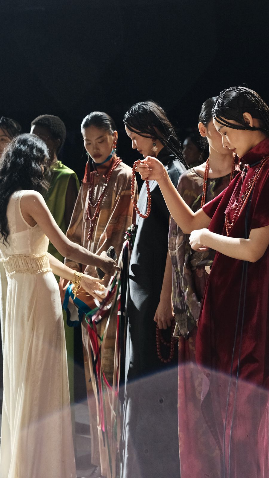 素白在中國國際時裝周發(fā)布2025春夏新品的當天,是品牌創(chuàng)始人馬乖的生日。這場秀像是設計師前半途的答卷,在品牌的重要節(jié)點打下了扎實的“結”,創(chuàng)立于2020年,第一個亮相時裝周的湖南原創(chuàng)品牌,創(chuàng)立之初,品牌的影響力完全來自于互聯網,在湖南株洲的服飾熱土上,有得天獨厚的市場集群優(yōu)勢,在傳統(tǒng)服飾資源的滋養(yǎng)下,“爆款”道路輕車熟路,但是馬乖沒有急于“收割”,而是耐心走出了另一條路:推動民族文化基因的時尚化再生,讓原創(chuàng)品牌在中國式現代化進程中被賦予新的內容和發(fā)展路徑。