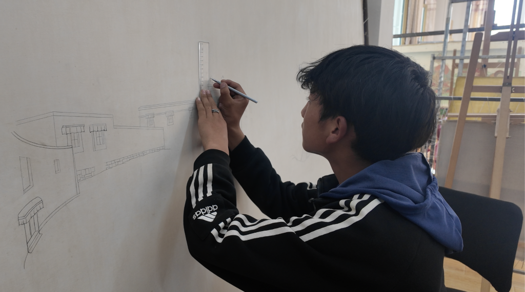 “樹有千條枝,樹根才是本?!备卢?shù)吕战虒?dǎo)學(xué)生時說,不論大小,畫師繪制唐卡時要凈手,保持內(nèi)心的寧靜與虔誠。