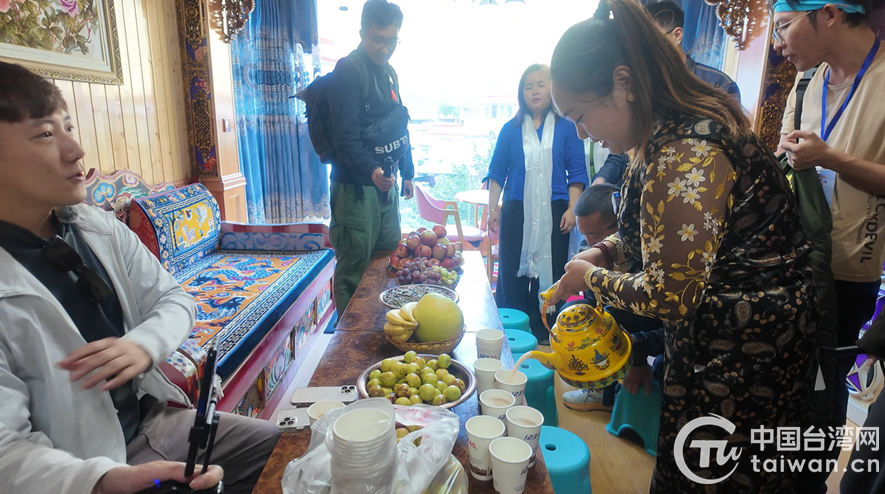 她指出,方圓的待客之道、兩人之間的應(yīng)對(duì)交談,都讓她感覺(jué)到,大家是受到相同的中華文化影響。她也熱情地向方圓介紹臺(tái)灣的情況,并邀請(qǐng)方圓到臺(tái)灣走走看看,方圓則邀請(qǐng)大家再來(lái)家中做客,感受這里的藏族文化。