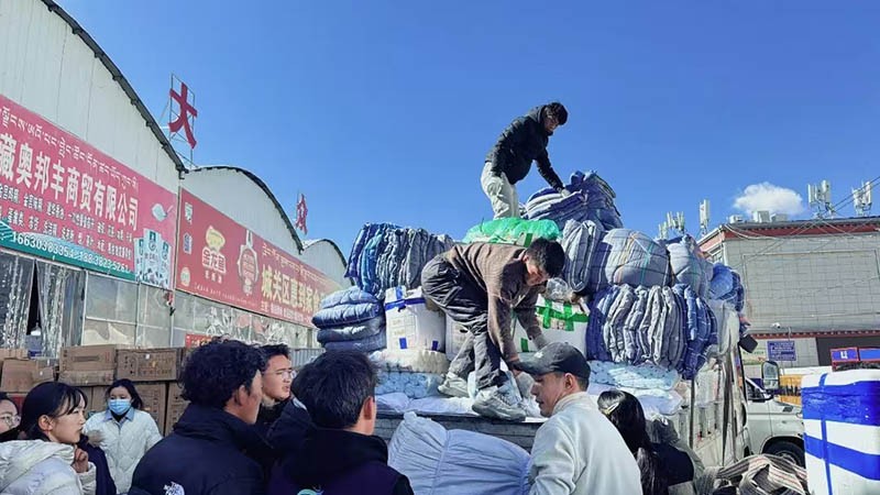 立馬行動起來!他們自籌資金,陳軍亮還聯(lián)系到一些戰(zhàn)友,共同集資采購救災物品。作為公益機構(gòu)負責人,王順利和她的小伙伴,第一時間買了從西安轉(zhuǎn)機飛往拉薩的機票,并在路上聯(lián)絡(luò)西藏的伙伴,采購物資足足裝了3卡車,共30多噸,價值超過40萬元,緊急運輸發(fā)往定日。