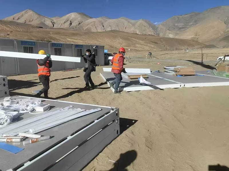 據(jù)介紹,災區(qū)海拔高達4000多米,氣溫只有-13℃,所以參與搭建的工人,必須是之前有過高原作業(yè)經(jīng)驗的?!凹b箱房是緊缺物資,我們早點到,就能讓更多人得到幫助?!碑?shù)刎撠熑苏f。