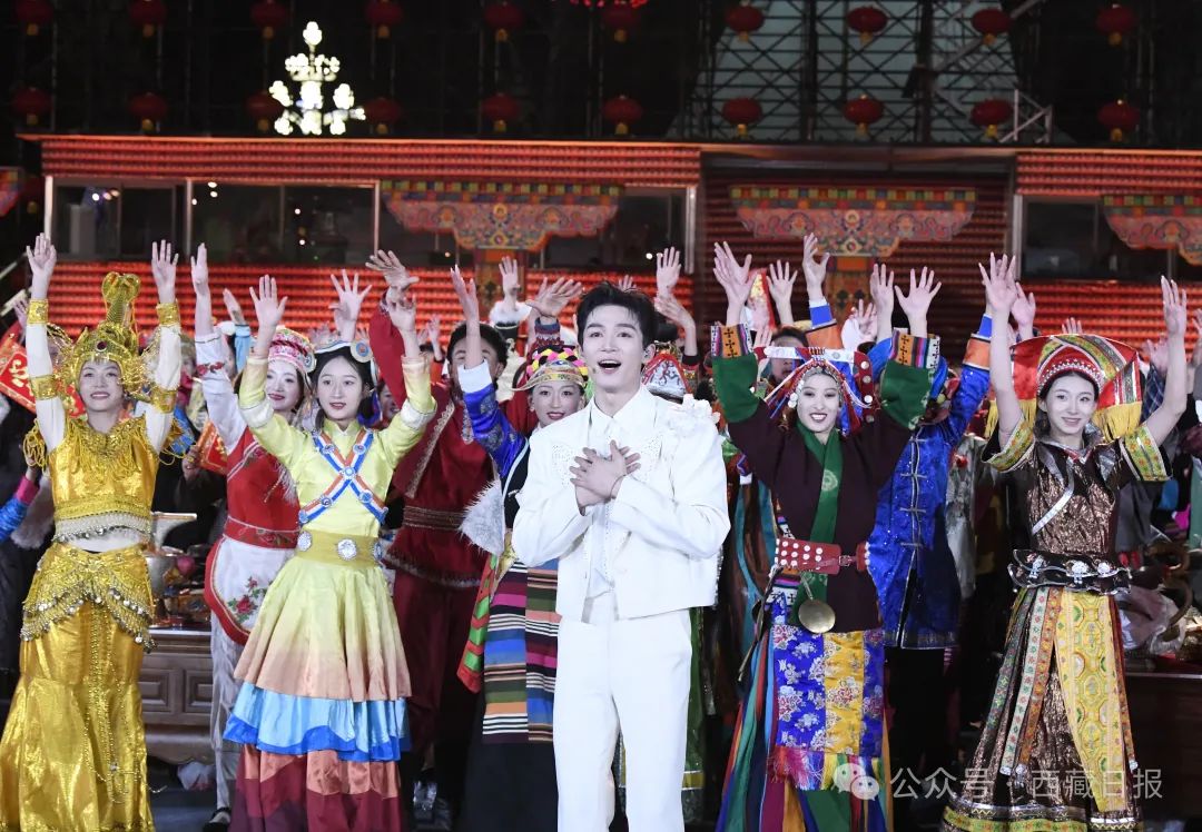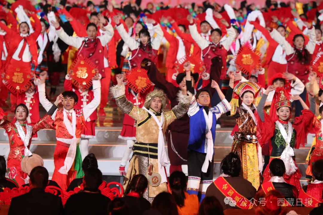零點倒計時后,昌都市江達縣崗托村群眾、山南市玉麥鄉(xiāng)卓嘎央宗姐妹、《日光之城》主創(chuàng)人員和9位援藏干部,代表西藏各族干部群眾,配合北京主會場和其他三個分會場演職人員,一起向全球華人拜年、送祝福。