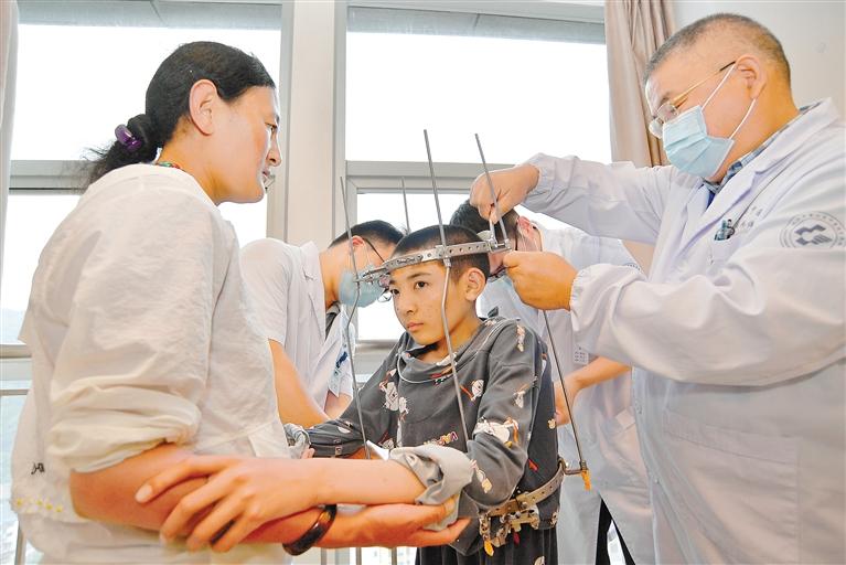 教育“走出去”取得成功的同時,醫(yī)療幫扶也同樣創(chuàng)造了奇跡。2020年8月,經(jīng)援藏工作組對接協(xié)調(diào),蕭山區(qū)中醫(yī)院在色尼區(qū)啟動“抬頭挺胸·重塑脊梁”圓夢行動。曾因脊柱嚴重畸形、身高僅有135厘米的藏族小伙尼瑪扎西來杭免費治療半年后,奇跡般地長高了22.3厘米。截至目前,已有25位像尼瑪扎西這樣的患者得到救治,挺起了人生的脊梁。