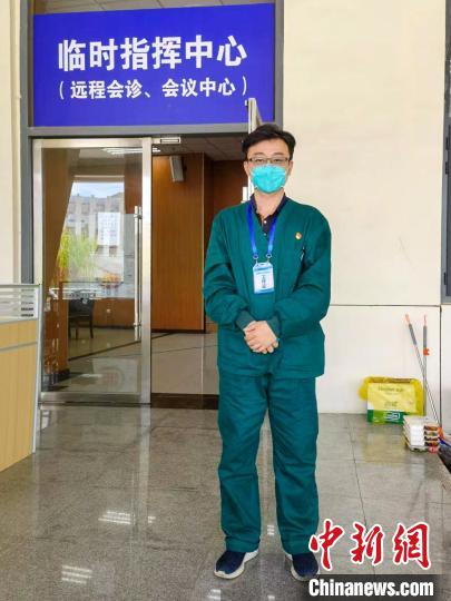 北京市第十批“組團式”援藏醫(yī)療隊成員趙萬全在拉薩方艙醫(yī)院臨時指揮中心?!∈茉L者供圖