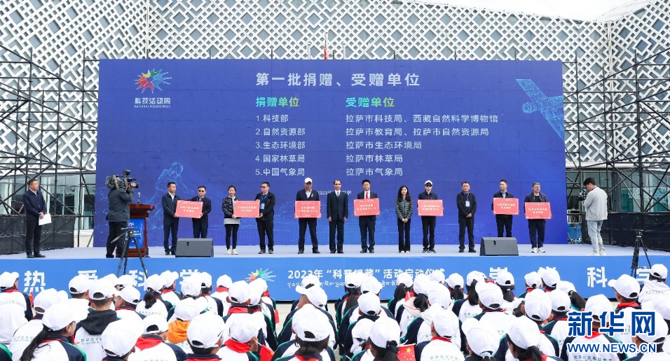 國家林草局科技司帶隊出席啟動儀式,并組織有關(guān)單位向拉薩市林草局捐贈林草科普物資。(新華社發(fā) 宋平 攝)