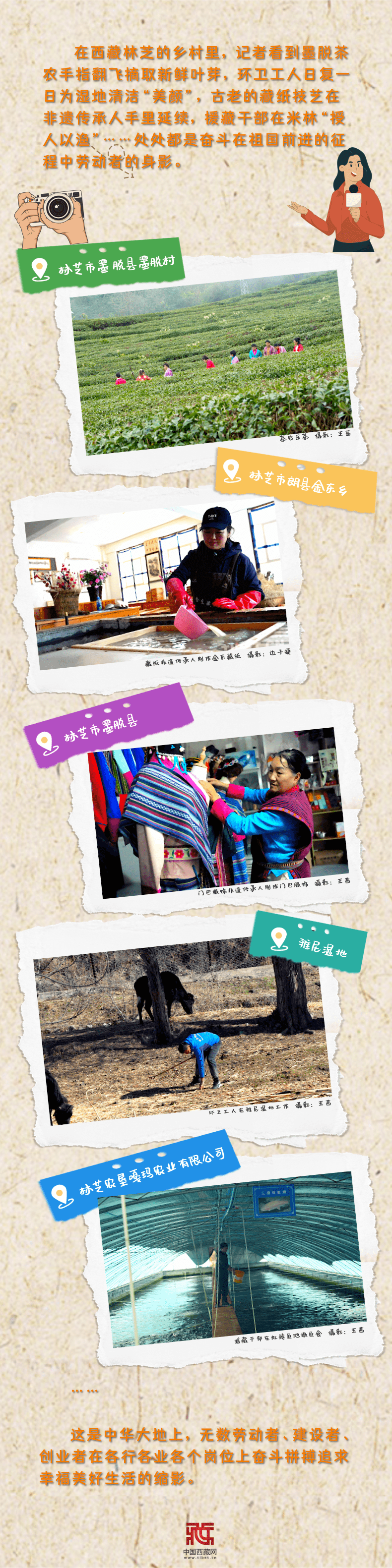 在西藏林芝的鄉(xiāng)村里,記者看到墨脫茶農(nóng)手指翻飛摘取新鮮葉芽,環(huán)衛(wèi)工人日復(fù)一日為濕地清潔“美顏”,古老的藏紙技藝在非遺傳承人手里延續(xù),援藏干部在米林“授人以漁”……處處都是奮斗在祖國(guó)前進(jìn)征程中勞動(dòng)者的身影。這是中華大地上,無數(shù)勞動(dòng)者、建設(shè)者、創(chuàng)業(yè)者在各行各業(yè)各個(gè)崗位上奮斗拼搏追求幸福美好生活的縮影。