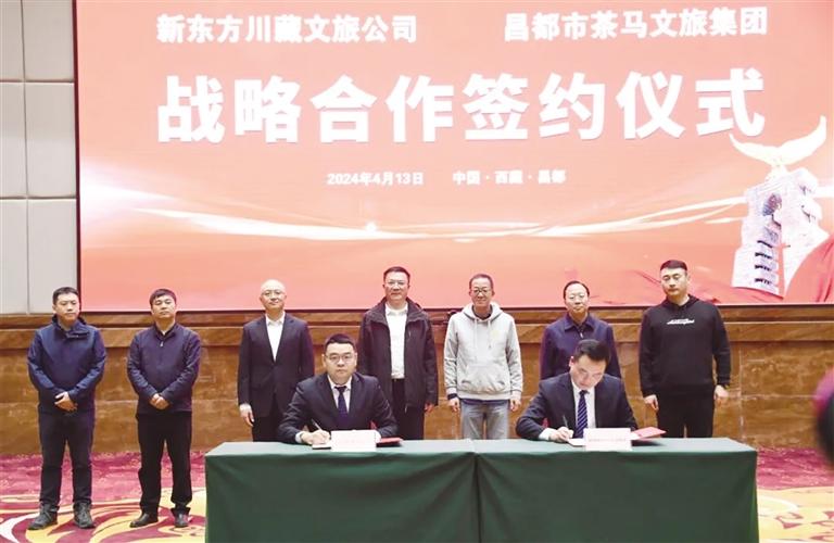 除了宣傳推廣昌都美景、好物,4月14日,俞敏洪還出席了昌都市茶馬文化旅游發(fā)展集團(tuán)有限公司與新東方沃凱德(四川)文旅有限公司簽署戰(zhàn)略合作框架協(xié)議的簽約儀式。