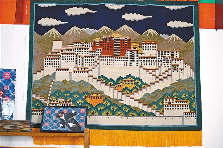 圖為喀瓦堅藏毯廠生產(chǎn)的以“布達拉宮”為題材的藏毯。 記者 趙越 攝