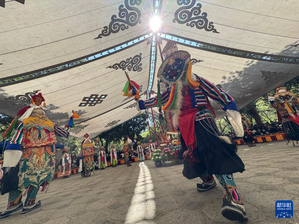 鑼聲喧天,院外空地上拉起遮陽(yáng)天幕,搭起一方舞臺(tái),市民和游客團(tuán)團(tuán)圍坐。假期前兩天,拉薩市城關(guān)區(qū)娘熱民間藝術(shù)團(tuán)在這里分別演出傳統(tǒng)藏戲《諾桑王子》和《白瑪文巴》,樂(lè)曲悠揚(yáng)婉轉(zhuǎn)、唱腔高亢激昂。觀眾不時(shí)為演員的精彩演出鼓掌叫好。