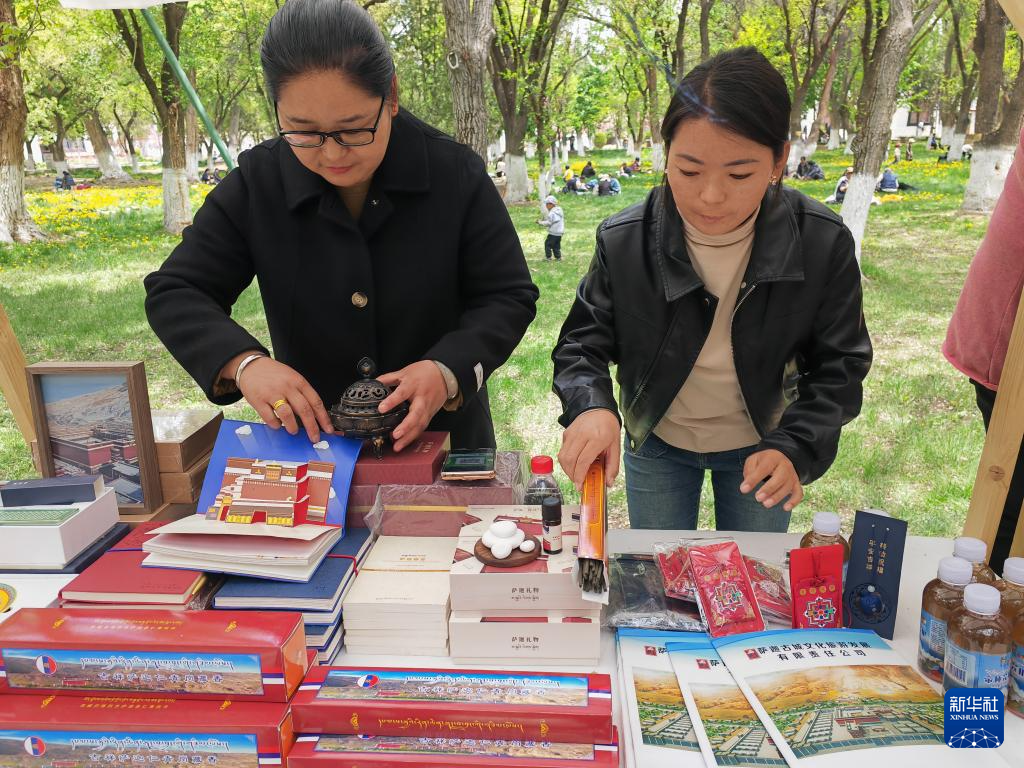 裝飾精美的藏式茶具、羊毛氈制的牧羊人玩偶、打開封面彈出立體建筑的創(chuàng)意手賬本……在林蔭道旁,文博文創(chuàng)集市集中展現(xiàn)了10多類500余種特色鮮明、別出心裁的文創(chuàng)產(chǎn)品,引得不少游客駐足選購(gòu)。